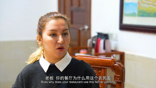 带着自己的思考,Nika叩开了当地一家餐厅的大门。一进门,她就被布满农民画的走廊吸引了目光,这里小桥流水,浅池红鲤,古色古香。Nika也从餐厅老板的口中得知餐厅的设计为什么要结合农民画。“好吃、好看”是Nika的真实体会。