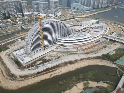 开工以来项目团队克服了淤泥地质下基坑开挖、超长超宽大体积混凝土筏板浇筑、穿心式桥梁双双桥与主体结构交叉施工、大跨度钢桁架空中连廊施工、临水环境下外墙防水施工等一系列考验,顺利完成了冲出正负零、主体结构封顶、全面结构封顶等重要节点,获得各单位一致认可。