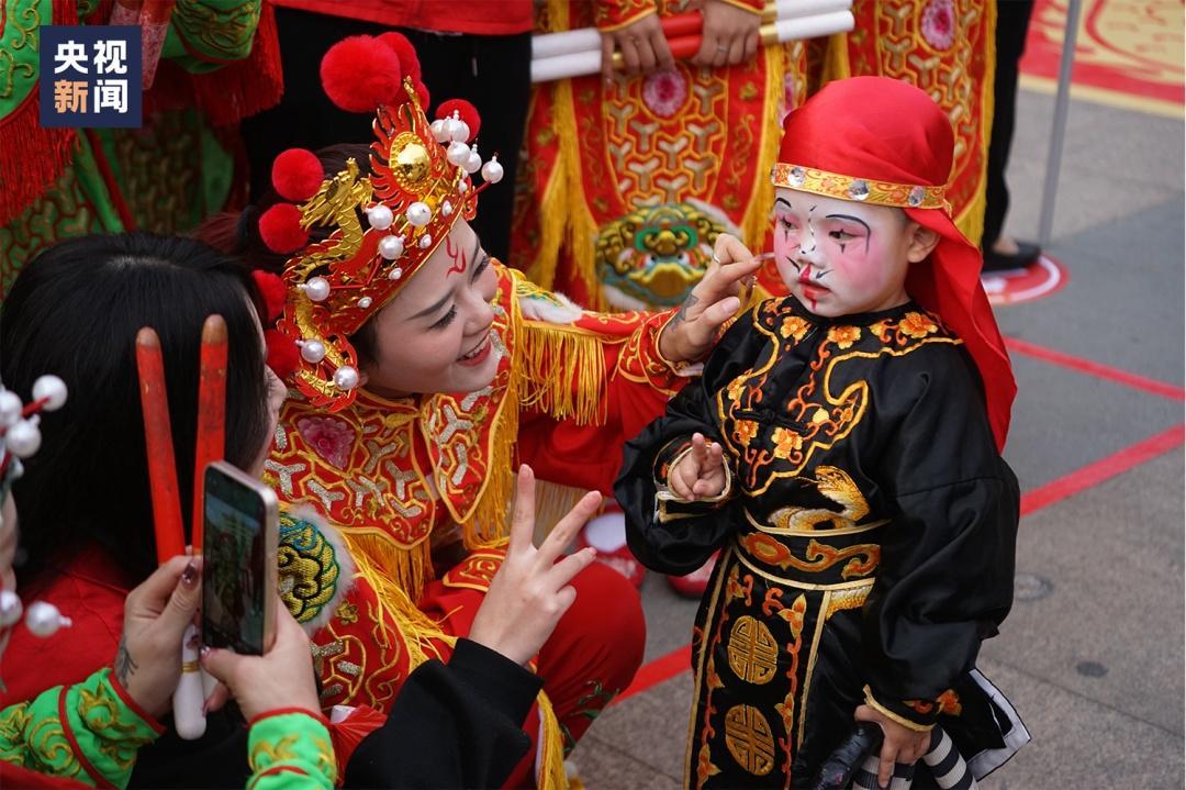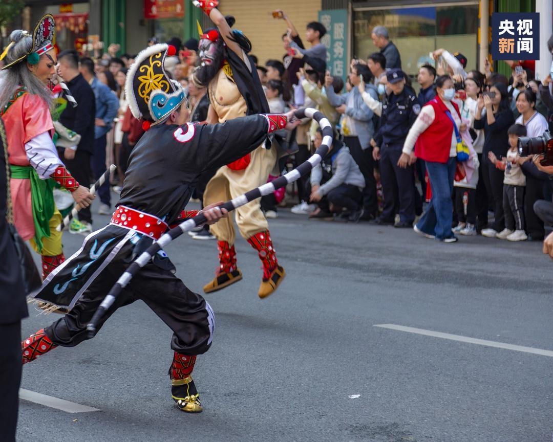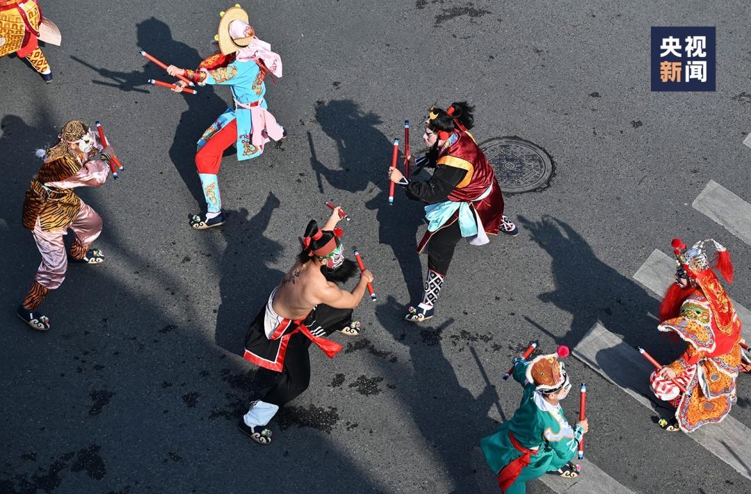 潮汕的英歌舞表演会持续整个正月,被网友称作“最强过年气氛组”。英歌舞是潮汕地区的一种集戏剧、舞蹈、武术于一体的民间舞蹈,取材于《水浒传》,距今已有300多年历史。2006年,潮阳英歌被列入第一批国家级非物质文化遗产名录。