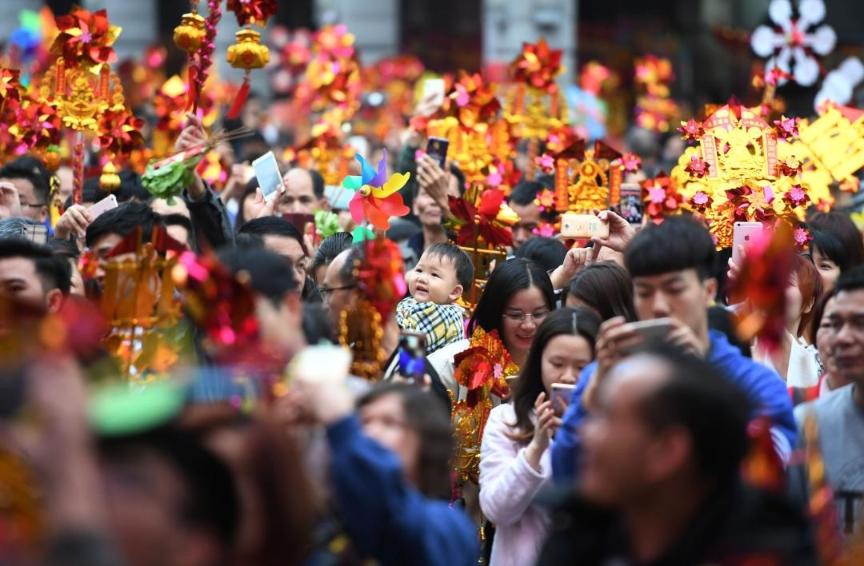 举着风铃和风车行通济的人们。(资料图片)