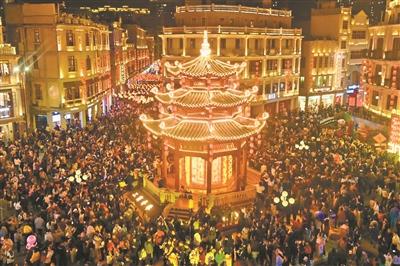 万灯璀璨闹元宵,良辰美景共团圆。元宵节晚上,走进汕头市小公园开埠区,犹如置身于奇幻浪漫的灯火世界。当晚的小公园开埠区人声鼎沸,人们赏花灯、看民俗、品美食,在璀璨灯海中饱尝一场潮侨文化与异国风情相融、传统民俗与现代科技交汇的节日文化盛宴。