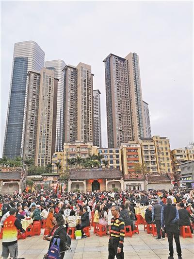 深圳,繁华中心区摩天大楼间的街巷中深藏着绵延不绝近800年的传统民俗,那就是深圳市福田区下沙村的“大盆菜宴”。2月24日(农历正月十五)下午,聚力“百千万工程”,弘扬围村文化省级非物质文化遗产项目下沙大盆菜活动在下沙文化广场举行。现场连开千桌,约万名下沙父老乡亲与海外宗亲同吃团圆的“大盆菜”,共度喜乐元宵节。
