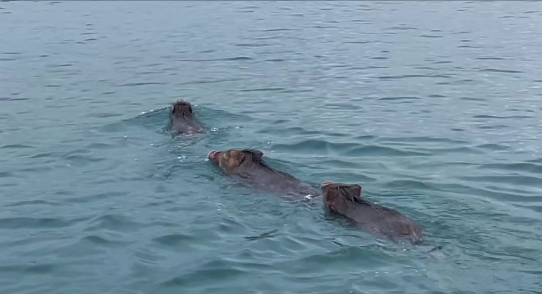 广州日报记者今日从河源市东源县委宣传部获悉,在河源万绿湖旅游码头出发往万绿谷方向约3公里处,有游客日前拍到3头野猪“畅游”万绿湖,让人拍手称奇。今日,又有当地多位村民给广州日报记者来电,称万绿湖畔周边的东源县新回龙镇、铁场镇连日发现有野猪(山猪)频繁出没在当地村庄觅食。