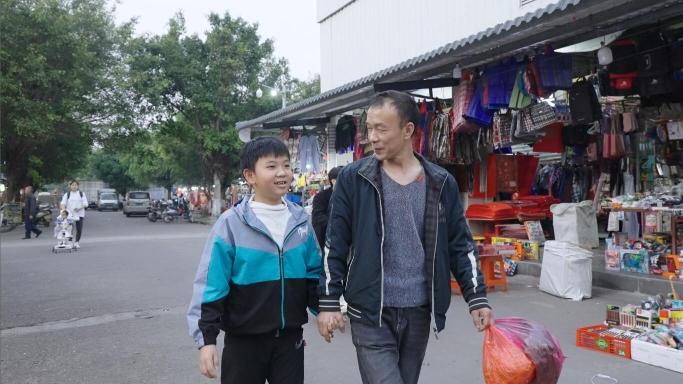 来自河南的农民工杨占业接送孩子放学,他们一家已经在佛山生活了13年。