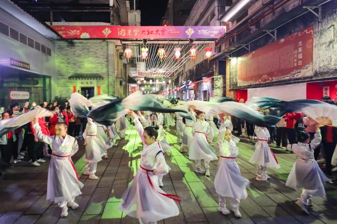 在热闹的朱紫街游玩,还时不时听到各种经典乐曲传出,循着声音走近,原来是太峯擂台上正在表演,相声、折子戏、武术让人拍手叫绝。