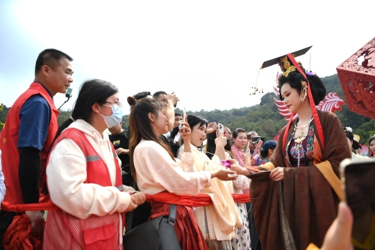 观音山负责人介绍,观音山景区素有“文化名山”的美誉,为弘扬传统文化、践行传统文化建设,在春暖花开的美好时刻,为提升市民游客的春日旅游体验,特地重磅推出第三届东莞观音山花朝节。本届花朝节以花为媒,将汉服之美和传统民俗结合,打造全新的春日游园体验,同时祈愿风调雨顺,国泰民安。