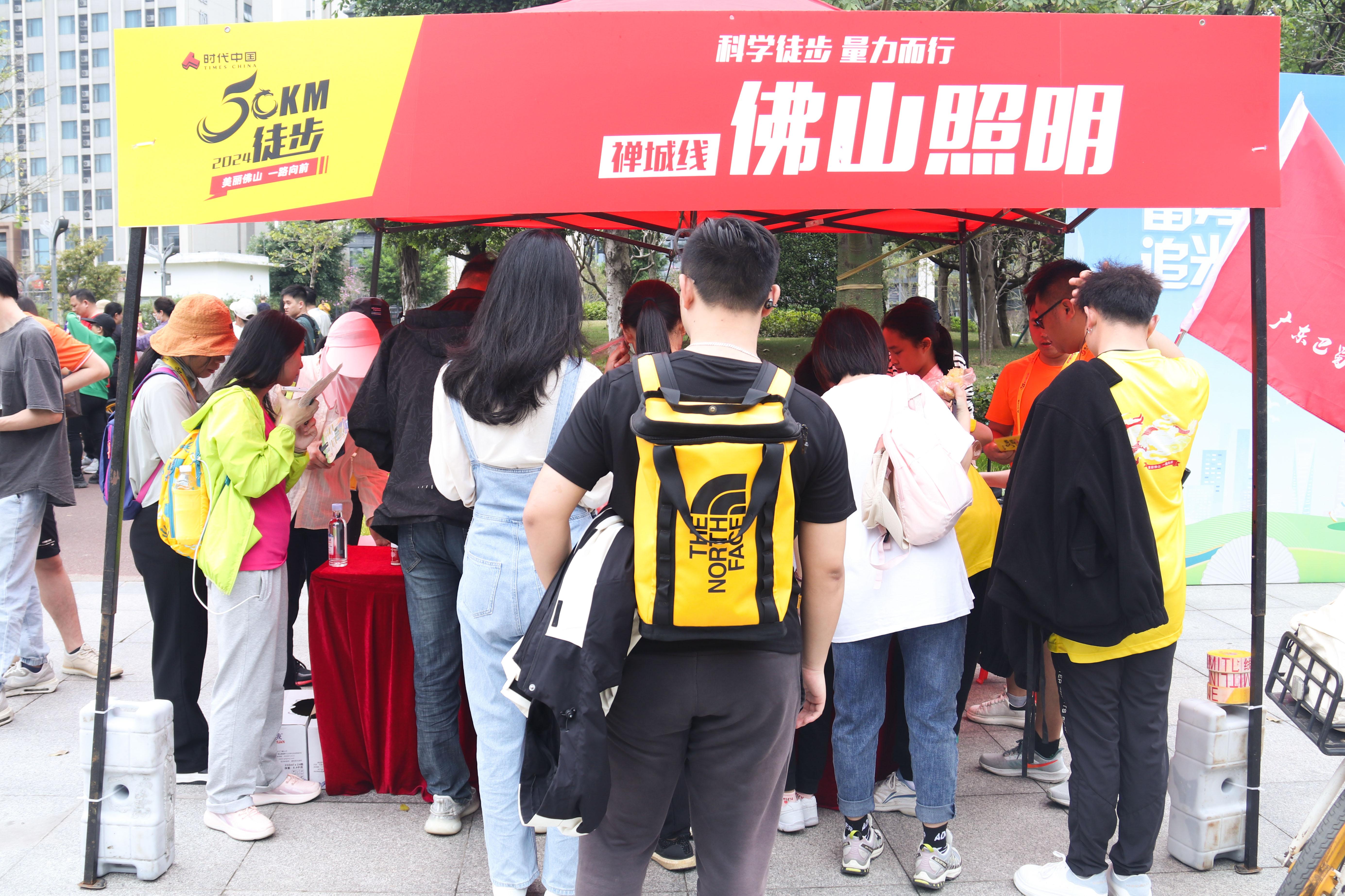 今年,佛山50公里徒步活动禅城线、三水线第五签均设在智慧公园,旁边不远处恰是佛山照明总部。与全城市民共享欢乐时光,佛山照明在签注点打造了特色展位,以专属福利回馈广大消费者。