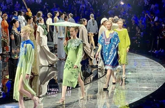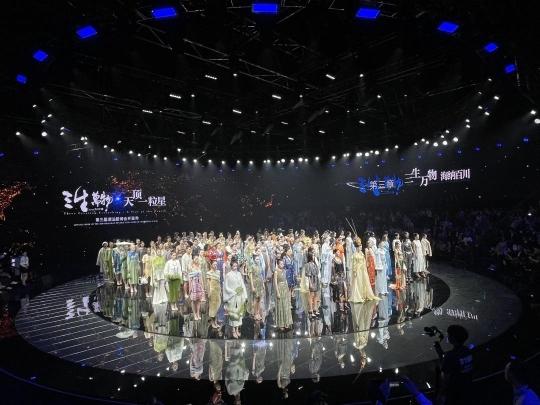 作为时尚与潮流交汇的产业盛会,第三届潮汕服博会最受瞩目的活动之一当属《潮起东方3.0》开幕秀。“秀场”以“无界”为主题,在行业内开创性采用3000平米超大圆形秀场,可容纳观众近千人,打造出震撼的“声光电”沉浸式体验,以独特的视角和创新的手法,将不同国度、调性、风格和品类的多个品牌编写成海上丝绸之路的故事,通过100多位国内外超模的走秀演绎,全品类展示内衣、家居服、毛衫、时装等多种纺织服装的魅力、多方位呈现独一无二的设计,给观众带来绝美视觉享受的同时也揭晓了行业流行新方向。