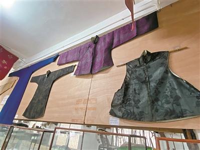 记者看到,博物馆墙壁上挂着几十套朝廷以及民间服饰,其中一套五品官服尤为精美,令人惊叹。“这套服装是我十年前在梅州收购的,当我第一次见到也真的被震惊到。”提起收藏这件朝服的经历,雷伟亮依然很兴奋。这套朝服包括保存完整的官帽、顶戴花翎、官袍、马夹、朝靴等。石青色的朝服庄严肃穆,皮质朝靴下面还钉有铁质的防滑钉,前掌八颗,后掌六颗,像极了现代的足球鞋底的防滑垫。“每套朝服都有不同风格,不同等级的官员穿着不同样式的朝服,这在当时社会是十分讲究的。”雷伟亮说。