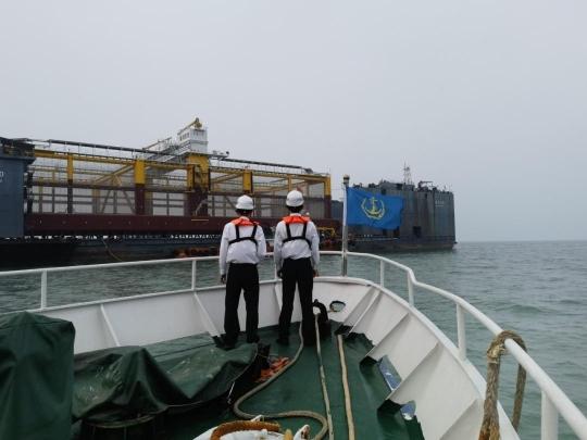 为服务海洋新质生产力发展,助力湛江市特色型现代海洋城市建设,保障“恒燚一号”进港安放投产,湛江海事部门开通“绿色通道”,科学高效办理水上水下活动许可;建立信息互通机制,组织召开平台安放作业保障协调会,健全完善应急预案,确保拖带及水上施工作业方案安全可行;做好海上交通组织,合理安排船舶进出港计划,及时发布航行安全信息,提醒过往船舶注意避让。东海岛海事处加强现场护航,联合湛江航标处出动“海巡09047”和无人机开展巡航工作,清理碍航渔船渔网,保障平台安全到达指定水域。