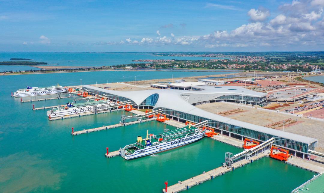 在徐闻港航站综合大楼的办公室里,湛江徐闻港有限公司的常务副总经理杨卫忠指着窗外码头上送客登船的一排廊桥说:“徐闻港在不断创新,像这种新研发的‘一桥双接式’登船廊桥,在全球是首度应用于客滚轮渡码头,实现车客分流安全登船。”