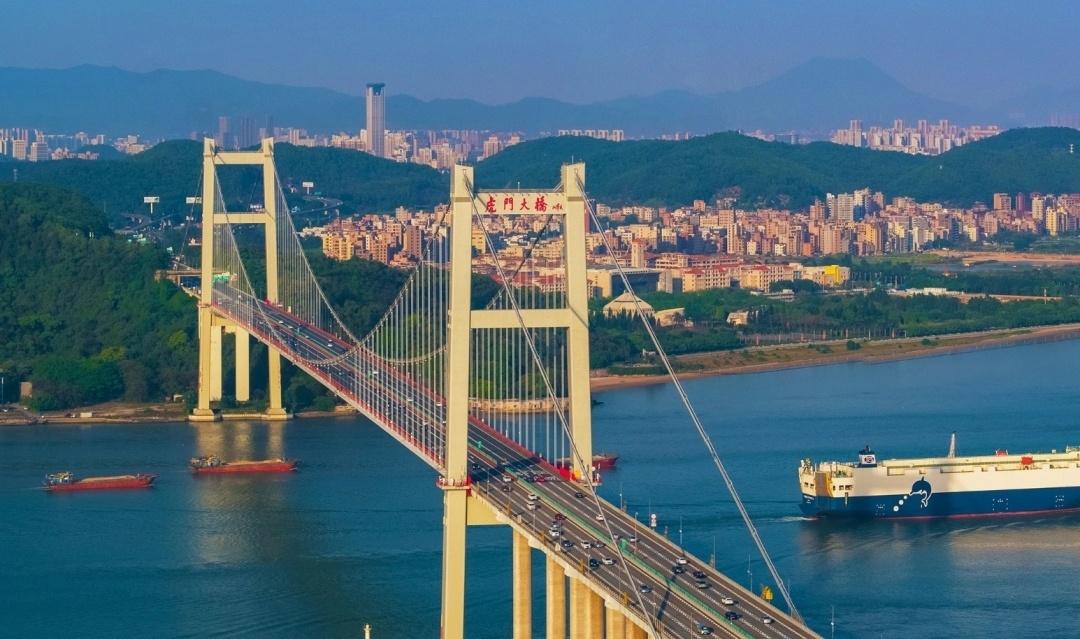横跨珠江口的虎门大桥,于1997年建成通车,是中国自行设计建造的第一座特大型悬索桥,也是珠江口首座跨江大桥。