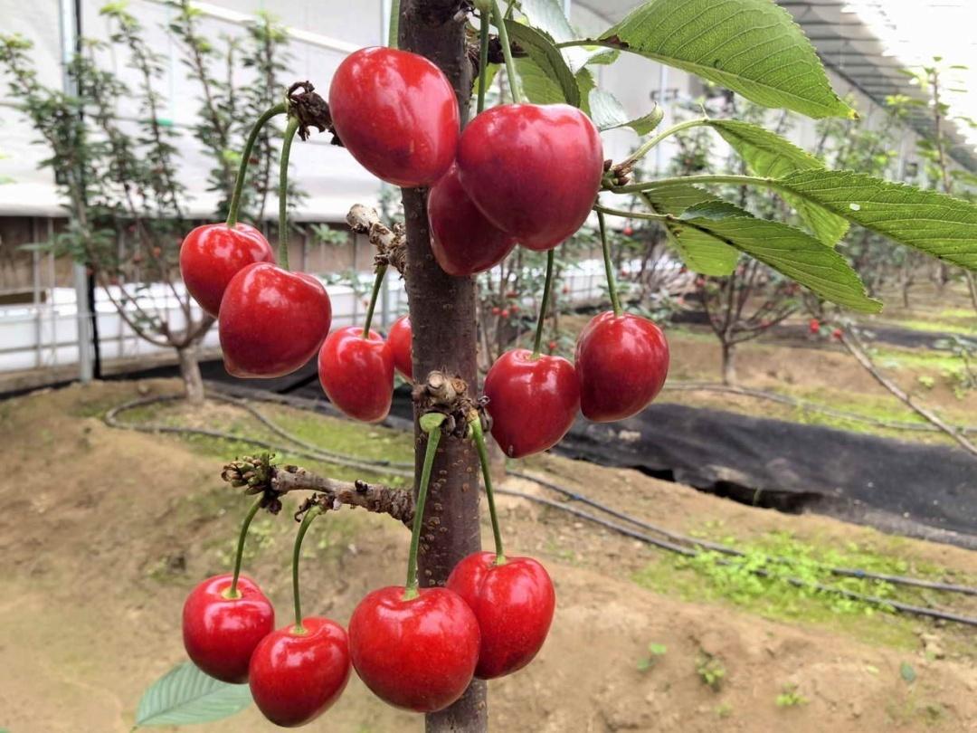 当记者今天来到种植大棚内,在绿叶掩映中,那一树一树色泽艳丽、晶莹剔透的樱桃露出了娇羞的模样。一个、两个心形的果子挂在枝丫上,玲珑妩媚,红艳光洁,似珍珠玛瑙般,站在樱桃树下唾手可得的甜美扑鼻而来。工人们穿梭在樱桃树下,小心翼翼地把果子摘下,放入小红桶内,再对采摘下来的樱桃及时分拣、包装。
