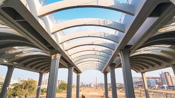 建设以来,项目团队坚持工期就是命令的原则,全面应用中铁建设高效建造体系,站房主体结构提前5天完成,钢结构提前15天完成,金属屋面提前5天完成。