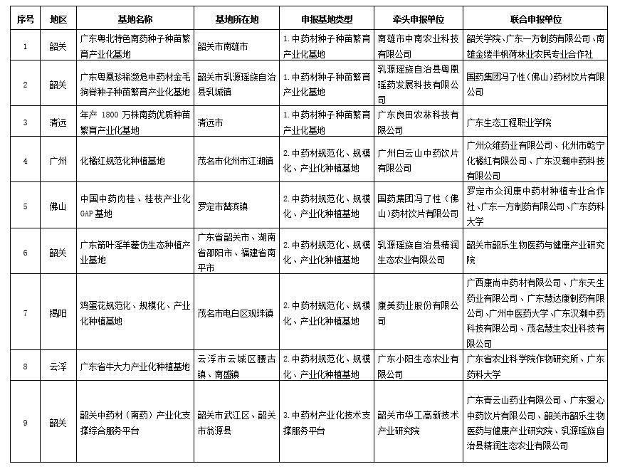 第三批广东省中药材产业化基地具体名单如下: