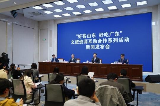 4月30日下午,“好客山东 好吃广东”文旅资源互动合作系列活动新闻吹风会在广州市、济南市同步召开,广东省和山东省启动“好客山东 好吃广东”文旅资源互动合作系列活动,推动粤鲁两省文旅资源优势互补、资源共享、互惠互利、共赢发展。