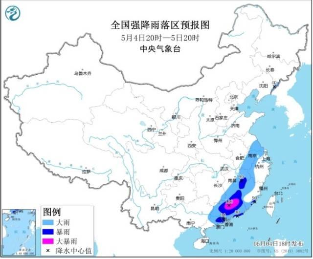 在5月4日18时,中央气象台继续发布暴雨黄色预警和强对流天气蓝色预警,雨水的落区集中在粤北和珠三角。