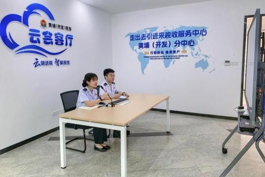 走进广州市黄埔区(广州开发区)税务局的“埔税云”税费服务宣传中心,税务的法制、纳税服务和税源管理部门正通过“云会客厅”为广东君润人力资源服务有限公司财务人员黄晓桃进行一项复杂涉税事项的辅导。