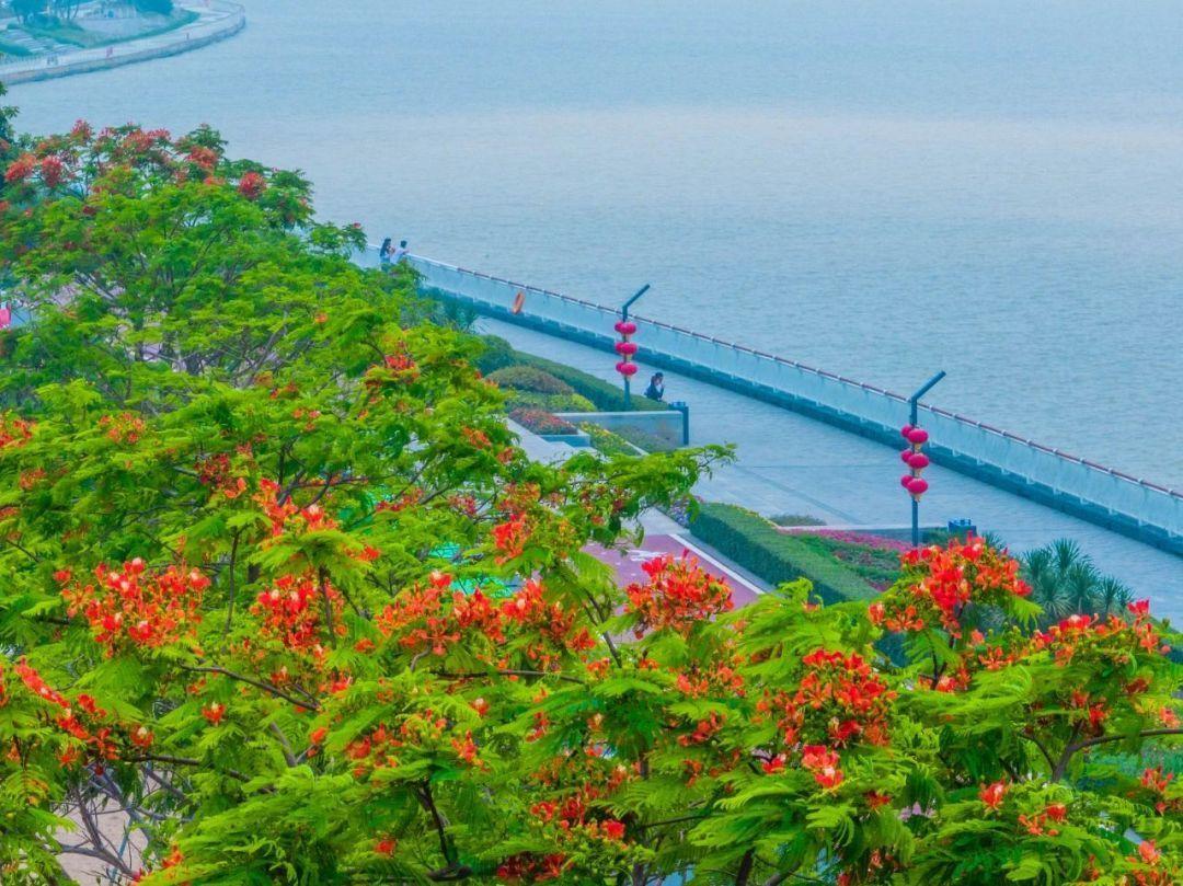立夏后的东莞滨海湾新区,大海边、桥梁上、公园里、道路旁,随处可见那耀眼的红在枝头跳动,枝枝艳丽,灼灼其华。