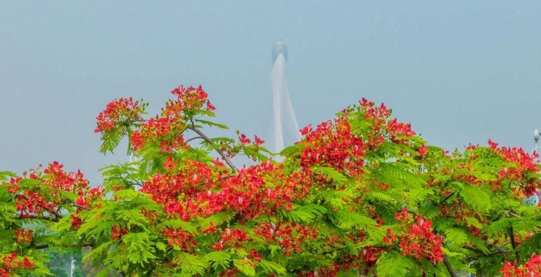 凤凰花在不知不觉间悄然盛开。如火如荼,宛如云霞!这是属于东莞滨海湾的花间来信。