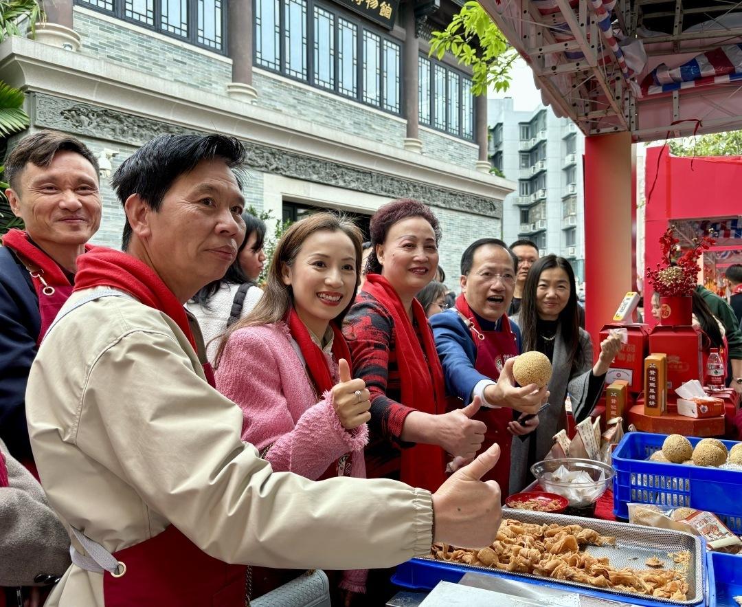 今年2月,广州侨界代表一行在永庆坊体验炸油角、蛋散