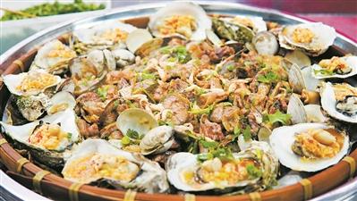 “没想到用簸箕盛装客家菜,一炮打红。”曾立辉兴奋地告诉记者,他在经营饮食店过程中不断创新,开始将生蚝、龙虾、鲍鱼、白贝等海鲜与河虾、鲶鱼、河鲤等万绿湖河鲜以及土鸡等菜肴融合在一起,用荷叶在竹制的簸箕上铺底,清蒸各式菜肴。很快,簸箕菜成了每桌必点的特色主打菜品。曾立辉称,用荷叶铺垫客家菜,不仅可以吸收荤菜多余的油脂,而且菜中还带有淡淡的荷香味。食客觉得簸箕菜新奇好玩的同时,还能增进食欲。