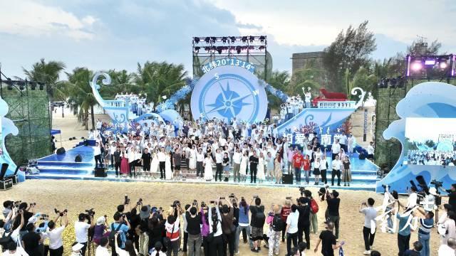 来自厦门的杨海滢夫妇第一次来到湛江。“今天觉得特别幸福,北纬20°13′14″有‘爱你一生一世’的美好寓意,在这里参加集体婚礼很有仪式感。这里的大海很美,希望以后会有更多新人来这里结婚,留下爱情的印记。”杨海滢说。