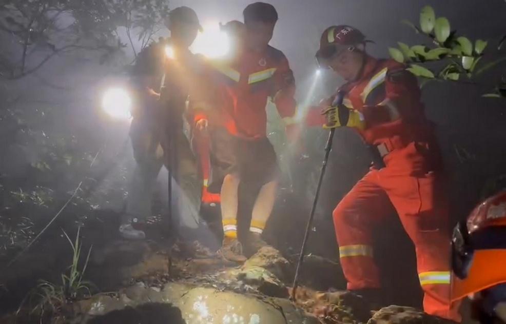 5月19日4时50分,救援人员终于在树林深处找到被困者,救援队员立即为被困者进行急救,补充水分、能量,处理伤口,添加衣服防止受寒。历经9小时连续搜救,19日早上7时40分,终于将被救者安全营救到山脚下移交120处置。