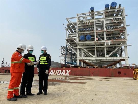 高栏海关关员对LNG工厂外部模块实施监装