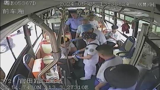 5月25日,佛山顺德372路公交车上发生惊险一幕:一名男子突然晕倒在地,而后心脏骤停,呼吸脉搏全无,当班驾驶员蔡南方在危急时刻果断施救,对其实施心肺复苏后成功救回。