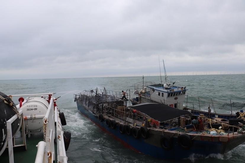 5月30日下午,一艘渔船在阳江外海突发火灾险情,经交通运输部南海救助局救助船出动施救,船上4名渔民平安获救。
