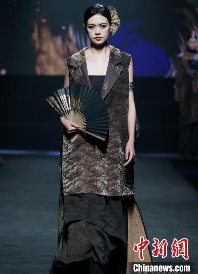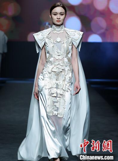 第19届中国(广东)大学生时装周(简称:广东大学生时装周)30日晚闭幕,12天的活动中,28所广东服装专业院校的逾千名设计新秀登上“实现梦想的天桥”。图为时装周参赛设计作品。(广东省服装服饰行业协会 供图)