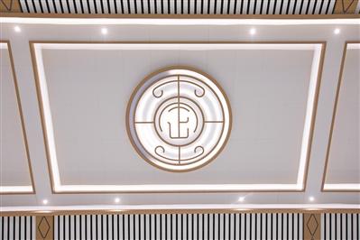 进入车站大厅,古朴厚重的古典气息进一步扑面而来,整体深化天花条板造型,利用对称坡屋面结构,结合抬梁式造型表现屋面的尺度。同时,用瓦当纹理进行点缀,突出文化底蕴的独特性。大厅的柱子也颇具巧思,利用秦汉建筑柱子的原型,用现代设计手法表现,与整体空间融为一体。