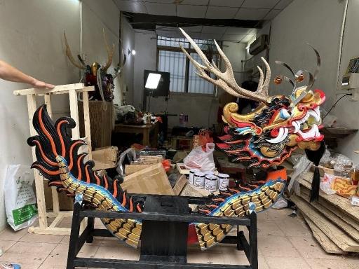 与“竞速”龙舟不同,容桂龙舟文化更倾向于“竞美”。这也给龙头设计与雕刻赋予了更多的创作可能。开木料、打胚、细雕、打磨、上色、装饰等等,一环扣一环。梁耀峰告诉记者,龙头雕刻过程,繁复且漫长,须有“甘坐冷板凳”的精神。“雕刻过程会产生很多木屑、粉尘,今年租下了这个地方,当作是自己的工作间。”他笑了笑说。