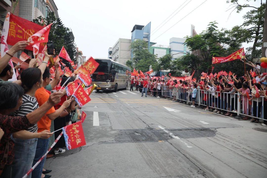 6月7日,超过1.5万名佛山顺德考生步入考场,迎接他们人生的“关键一考”。高考首日,为了给考生“壮行”,各校都精心策划,纷纷举行各式各样热闹而特别的仪式为考生送考。