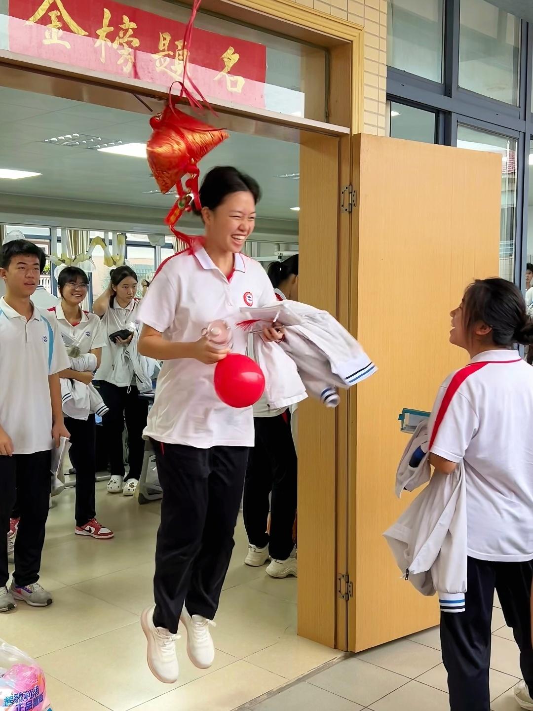 顺德区郑裕彤中学学子跳起头顶“吉祥粽”求“高中”