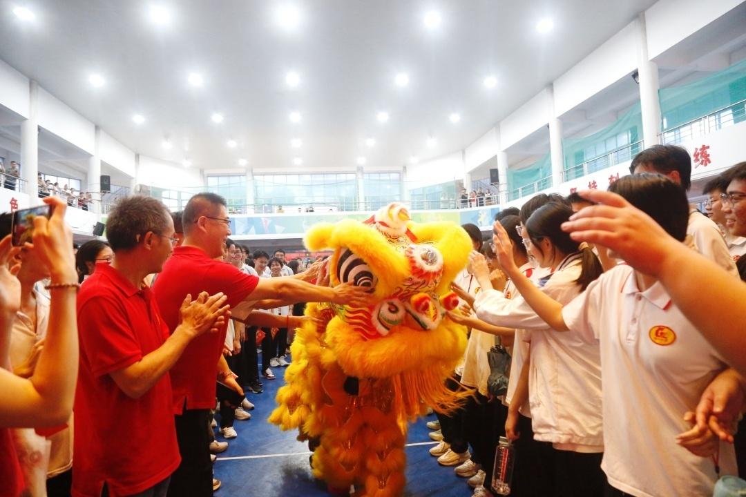 值得一提的是,桂洲中学,为了给高三考生“壮行”,该校在考前还举行了一场热闹非凡的送考仪式,现场邀请了舞狮助阵,考生们还纷纷上前,摸一摸醒狮祈求好运。
