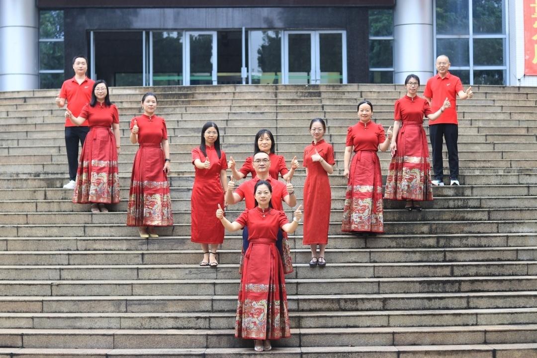 顺德区乐从中学的老师们身着精美的马面裙送考