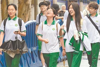 七中考点,不少同学面带微笑走出下午英语考试的考场。