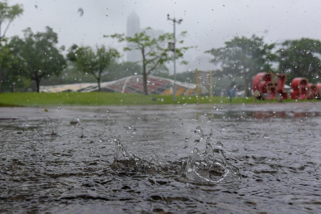 雨水滴落在地面上,溅起涟漪。 图/广州日报新花城记者:陈忧子
