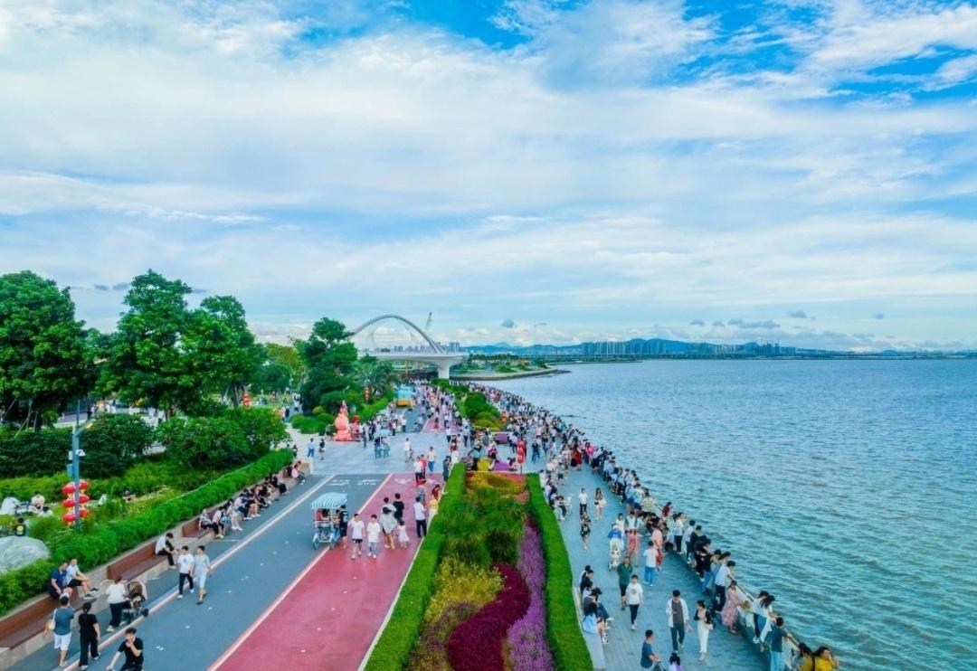 端午节当天,迎来了久违的阳光,不少市民和游客趁着最后一天假期,走进东莞滨海湾新区游玩散心。