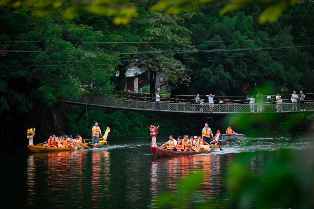 端午小长假期间,深圳锦绣中华中国民俗文化村举办端午主题活动——国潮亲子龙舟节热闹开展,苗族龙船节、苗龙大巡游、端午龙舟赛。