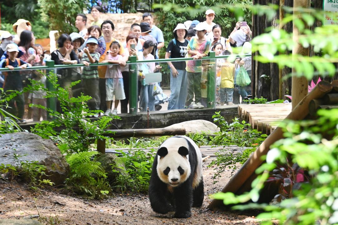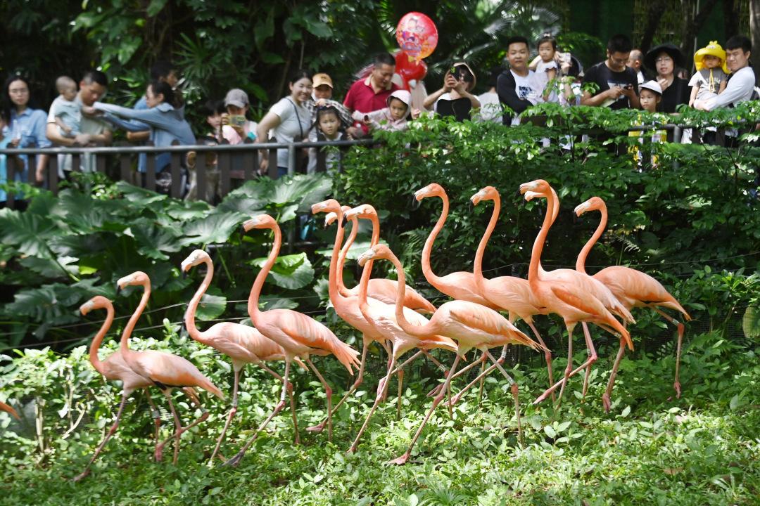 “端午”假期最后一天,大熊猫卖萌,火烈鸟列队行走,长颈鹿漫步……动物园里可爱的动物纷纷吸引游客驻足观看。