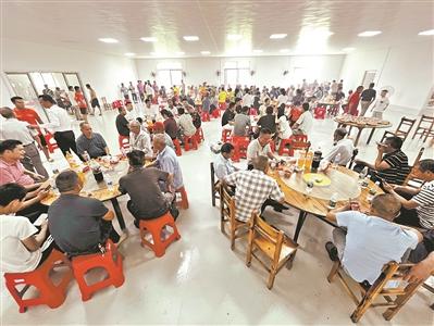 随后,两村村民在新落成的水口龙舟训练馆共进“走亲戚宴”,圆锅、圆盘、圆桌,倒茶、盛饭、夹菜,两村的“叔伯兄弟”叙旧,无关血缘,但坐下来,就是一家人。这一天,才算圆满。