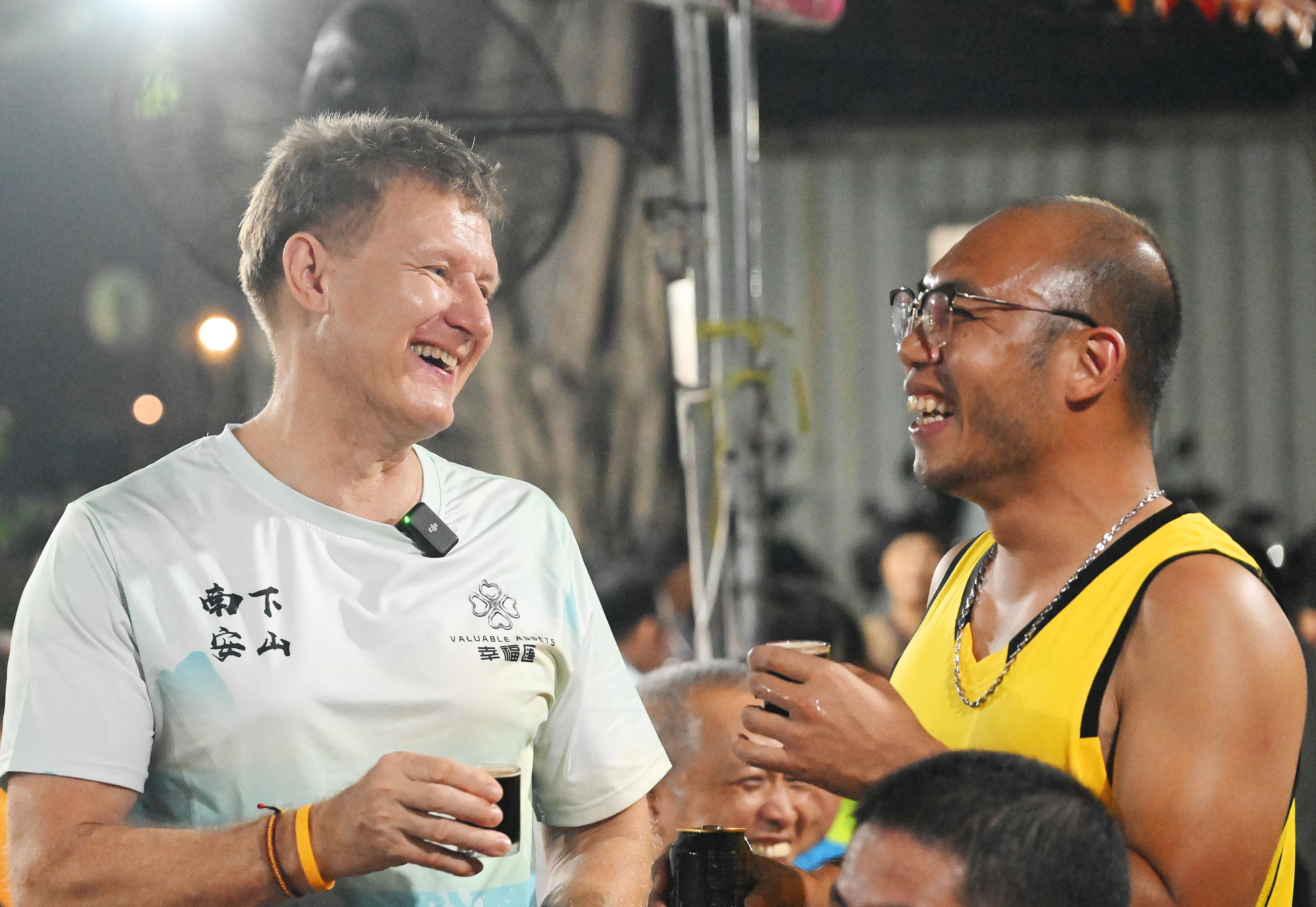 一天酣战后,便是热闹的“龙舟饭”。农历五月初一(6月6日)会龙仪式结束后,于尔基便随队友受邀到邻村张溪感受过一次“龙舟宴”。赛场上,他们是对手,餐桌前,他们是朋友。“干杯!”于尔基以中文给大家敬酒,觥筹交错处,涌动着浓浓乡情。