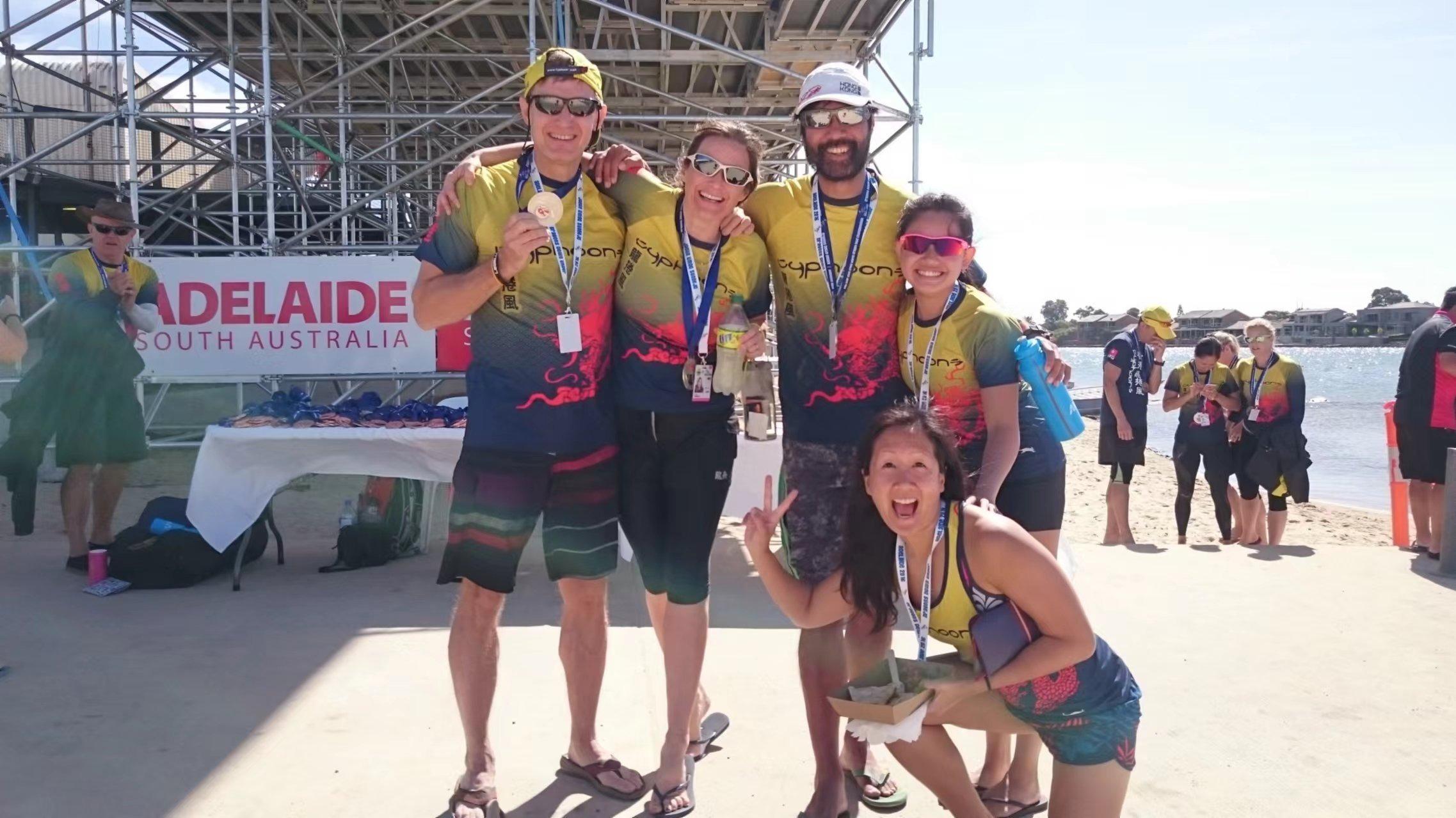 于尔基与早年的队友在澳大利亚阿德莱德参加世界龙舟锦标赛。采访对象提供