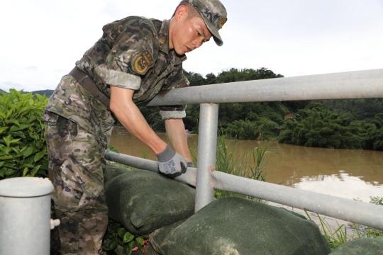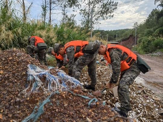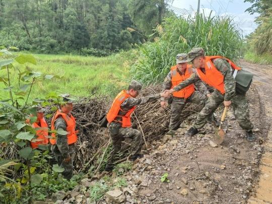 6月17日14时17分,武警梅州支队24名兵力在政治工作处主任温华楼带领下,抵达梅州市大埔县高陂镇展开抢险救援行动,紧急加固韩江支流合溪水下段堤坝。截至17日20时,支队官兵联合驻地群众装填、搬运沙袋6000余袋、加固堤坝1150余米,成功封堵3处管涌点。