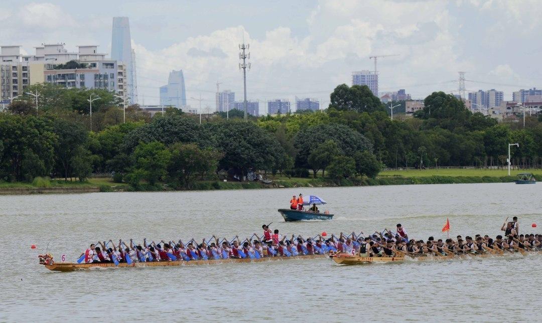 今年,共有15个村(社区)组队参加1300米直道竞速男子传统龙舟比赛,每支传统龙舟参赛队队员多达60人。比赛包括预赛、复赛、决赛三轮,不仅考验队员们的体能、耐力、爆发力,还需要发扬团结协作、拼搏争先的龙舟精神。