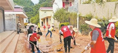 平远县组织全县党员干部下沉基层一线,开展汛后清淤消杀工作,为灾区群众重建家园。