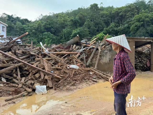 梅县区松源镇横坊村,阿婆家的老宅在洪水中垮塌。 南方+ 张笛扬 拍摄